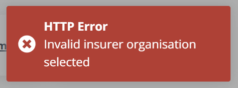 You will receive the below error message if you are trying to send a CNF to an Insurer that is not on the Insurer index.